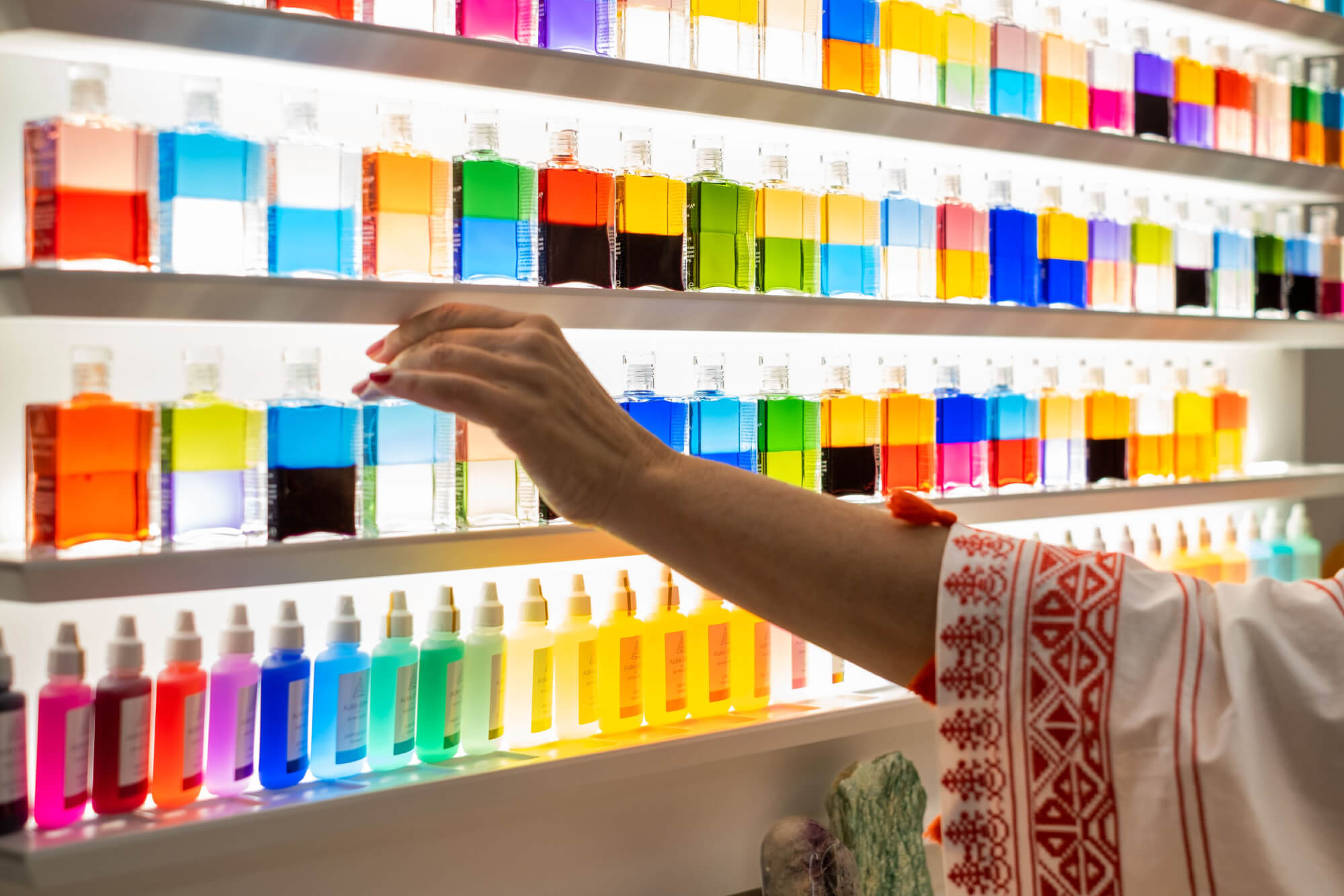 Aura-Soma® è un percorso di auto esplorazione consapevole del sé, un osservatorio dei movimenti della coscienza attraverso le frequenze dei colori e dei numeri, delle piante e dei cristalli, ingredienti che possiedono la chiave energetica per agire a livello sottile nel nostro corpo fisico ed energetico.